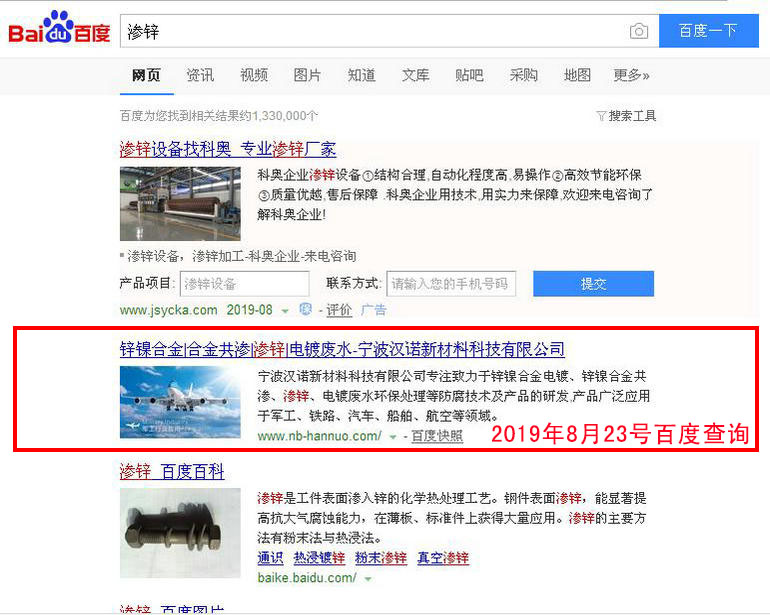 滲鋅 百度(PC)自然排名第1名